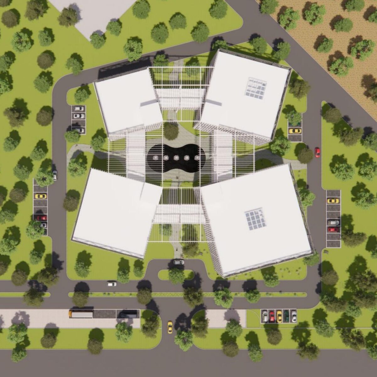 This post presents a multi-building complex intended for the administration, control, and testing operations of a factory producing organic chemicals. A key aspect of the project is the phased construction approach, which has informed the arrangement of the various blocks. These blocks are intentionally organized to create a substantial central courtyard. This courtyard is envisioned as a verdant and tranquil oasis, offering a respite from the surrounding industrial environment. The transition from the factory to this central court is carefully designed with extensive vegetation, which aims to mitigate the impact of the industrial surroundings through improved air quality and a more pleasant atmosphere. The scale and landscaping are intended to create a significant buffer.