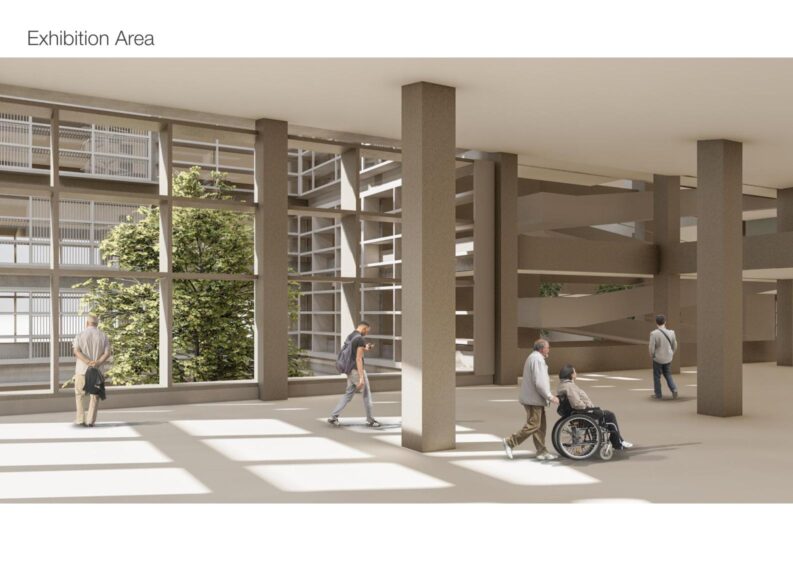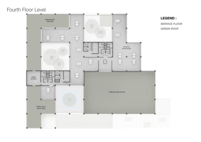 The 2 lower floor – Podium block, houses spaces for Museum & Exhibitions, Workshops, Auditorium, Cafe – Canteen & Restaurants and Administration.