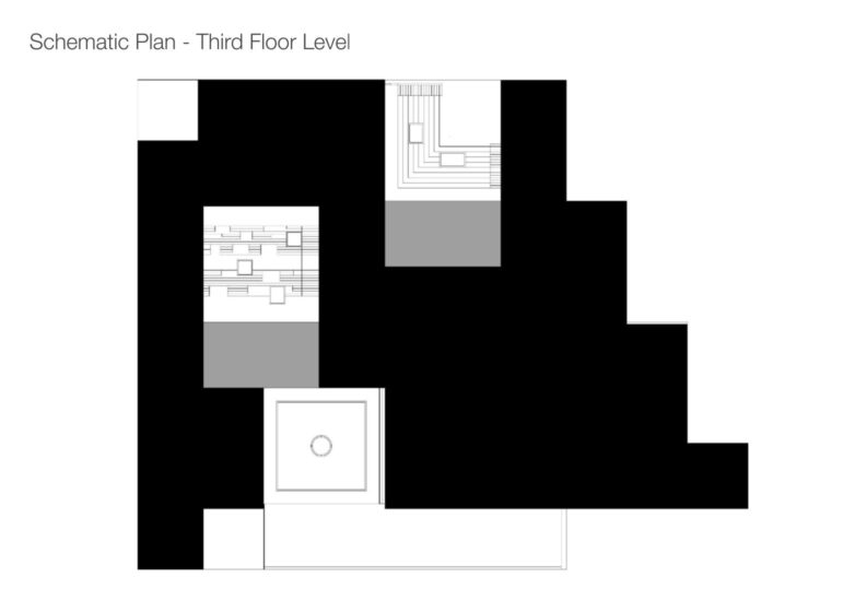 We envisage the building to be divided in 3 distinct zones. The lower being public, the middle being semi public and the upper as private.