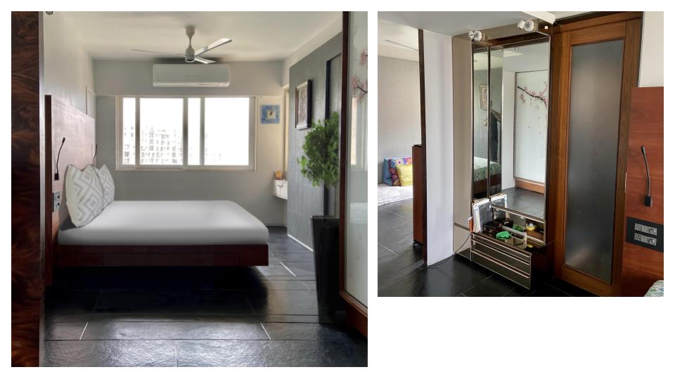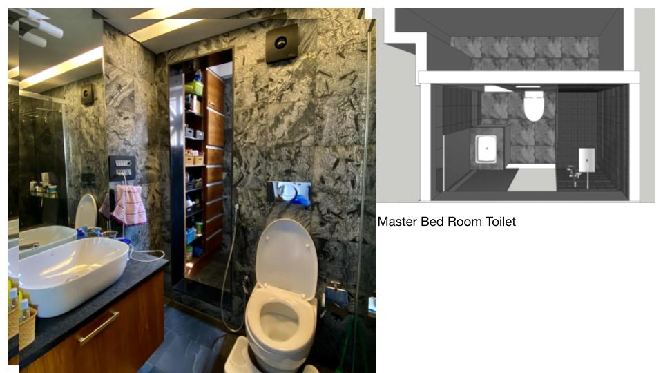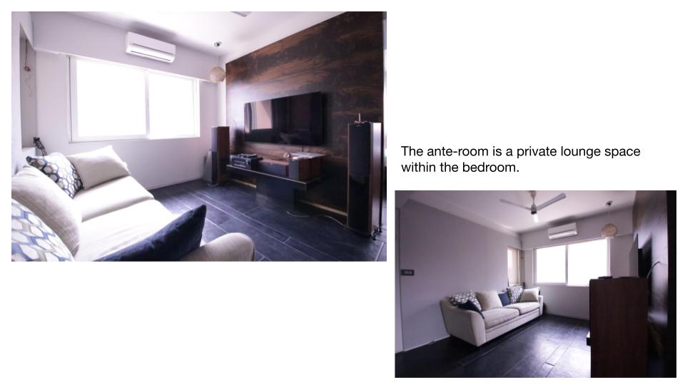 The house in an Apartment building. Two adjoining flats have been merged to create a large 4.5 Bedroom house. All the Flooring and Tiling in the House is made using natural materials. We have also used recycled wooden Doors in the entire house.