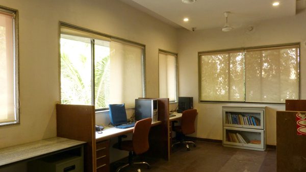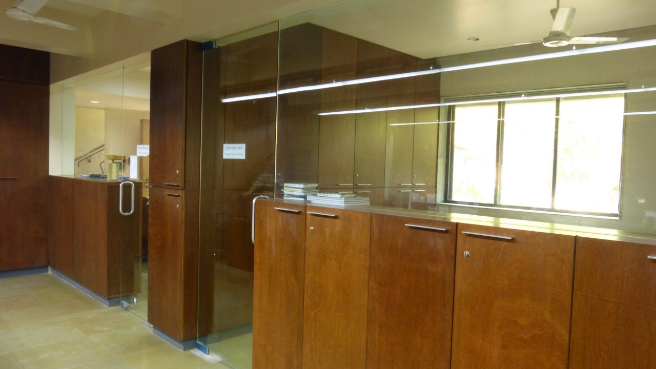 Partitions were replaced by storage systems. Dual sided storage further helped creating efficiency in cost and material. Multiplicity in use were achieved by planning and smart elements. Sliding Folding partitions which doubled up as exhibition panels and openable tables helped in easy hide-away multi-utility furniture.