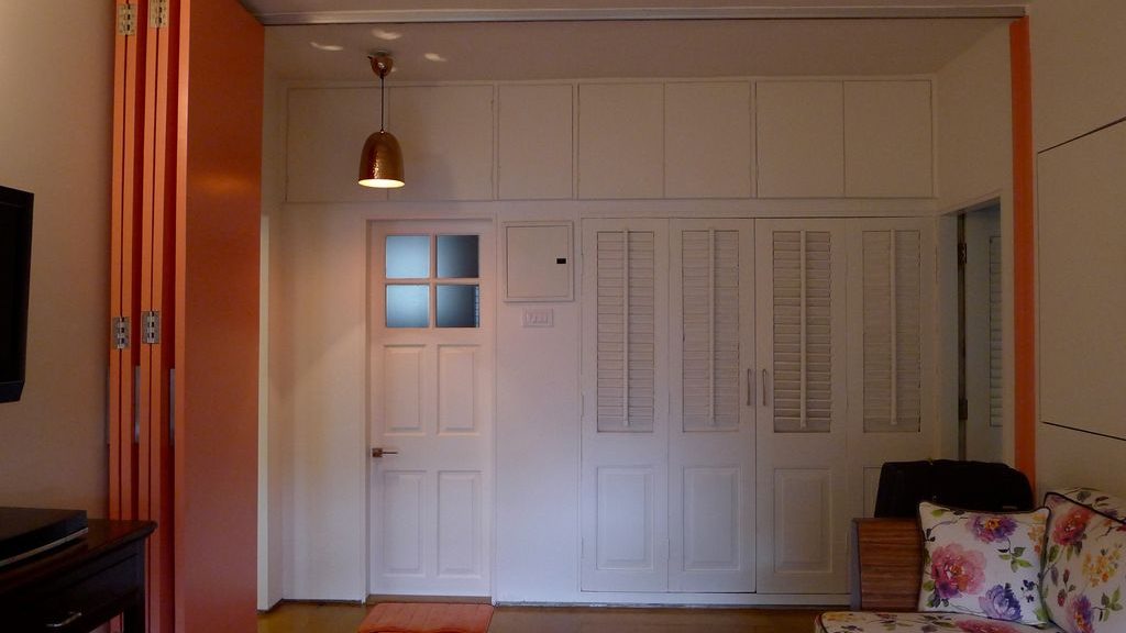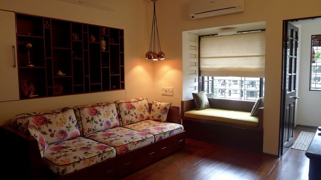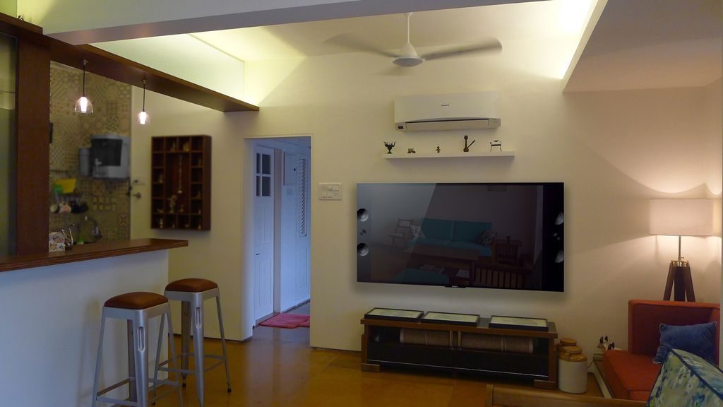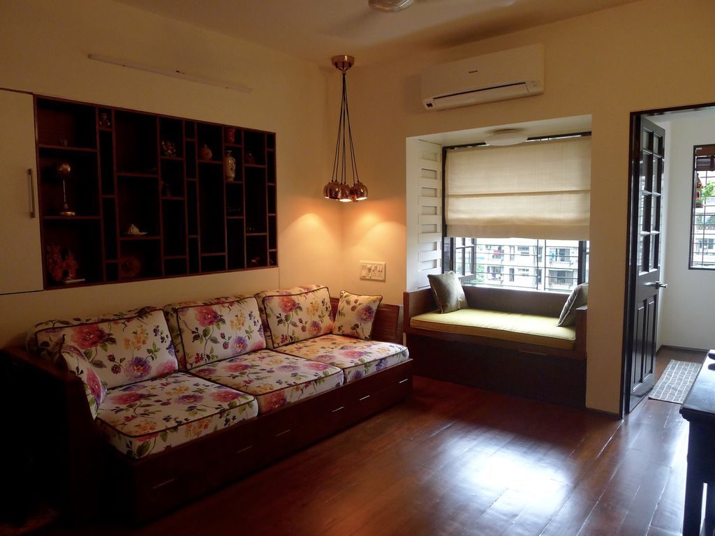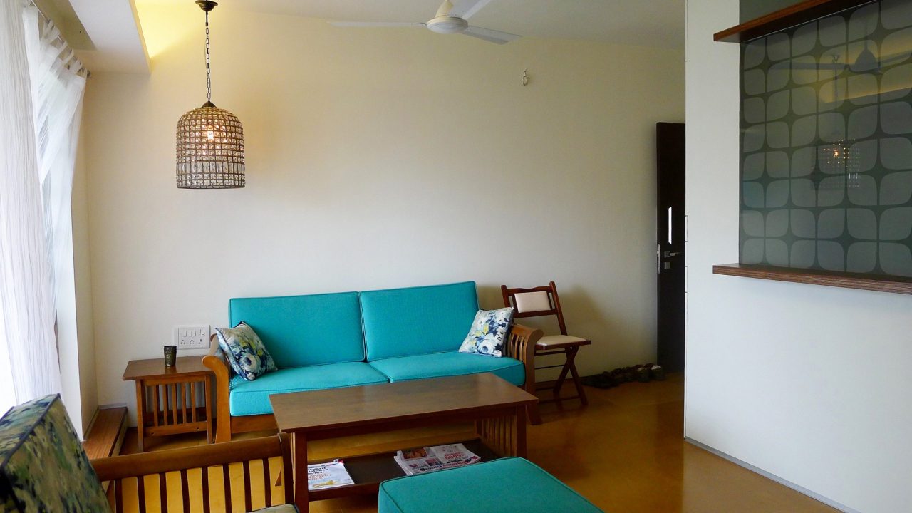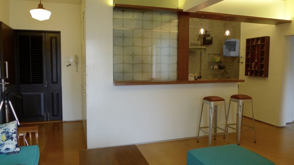 Practically every wall of the house was demolished after due diligencies on structural safety. The house was completely re-organised in context to 2BHK and converted it in to a flexible studio apartment concept – Open kitchen, Family room, Lounge, Study area and Sleeping space. Other artefacts like – lights, picture frames, etc. too were sourced from recycled markets.